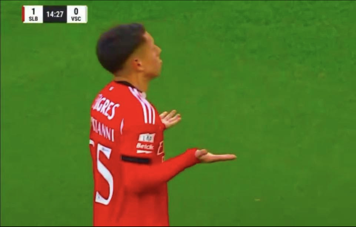 Minuto 14: 1-0! Prestianni abre o marcador para o Benfica! Ríos rouba a bola a Samu no meio-campo, entrou na área e depois deixou para trás, com Prestianni a surgir sozinho para um remate certeiro
